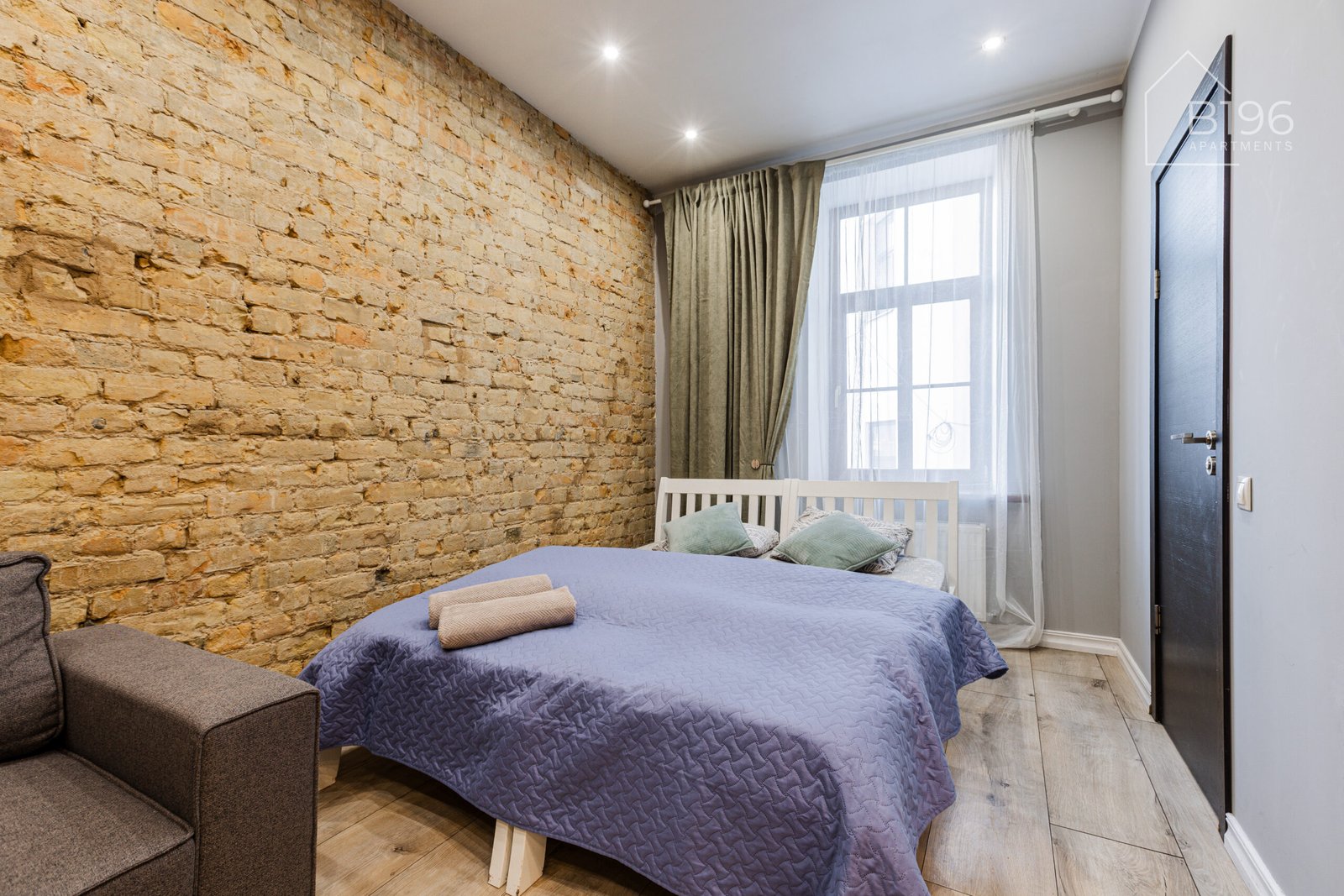 Dzīvoklis 1a (24 m²) atrodas pirmajā stāvā ar logiem uz pagalmu. Dzīvoklī ir privāta virtuve, ietilpīga duša, divvietīga gulta, dīvāngulta un viedtelevizors — viss nepieciešamais ērtai uzturēšanās reizei.